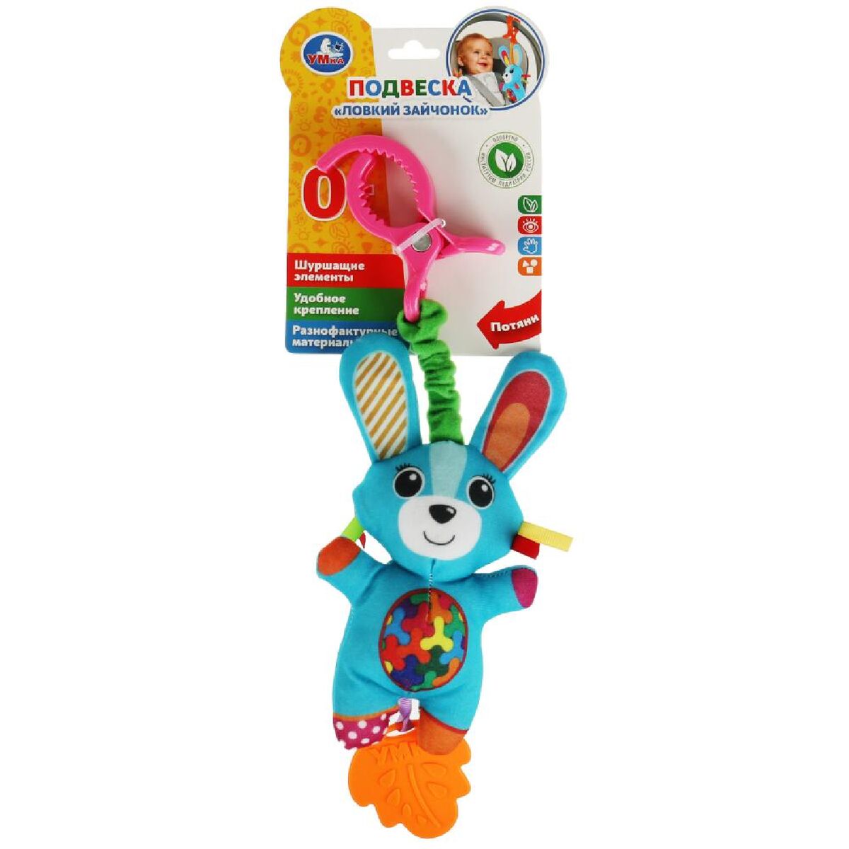 Текстильная игрушка погремушка зайка на блистере Умка в кор.300шт