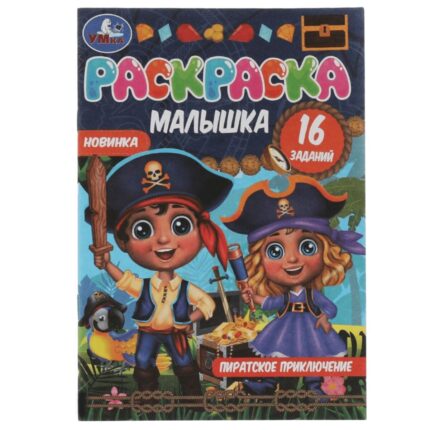 Раскраска-малышка. Пиратское приключение. 16 заданий. 145х210 мм. 8 стр. Скрепка. Умка в кор.100шт